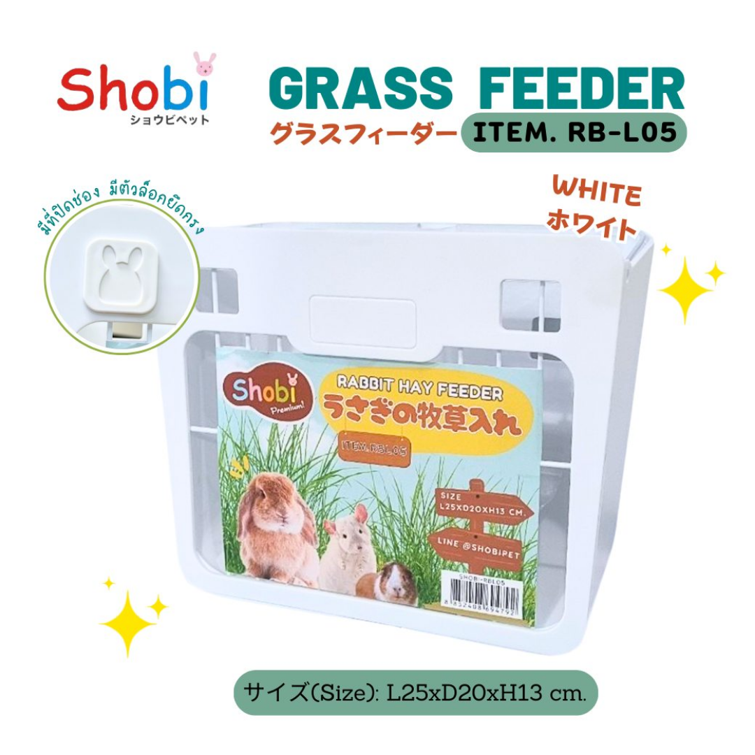 Shobi Grass Feeder รางหญ้า 2 in 1 ติดได้ทั้งในและนอกกรง ติดตั้งง่าย ทำความสะอาดสะดวก (สีขาว, สีชมพู) (RB-L05)