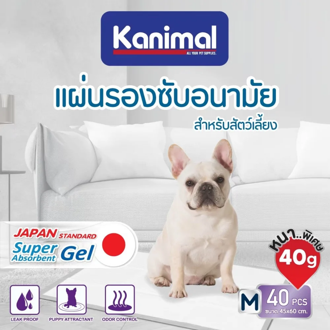 Kanimal Pad แผ่นรองฉี่สุนัข แผ่นรองซับ รุ่นหนาพิเศษ 40g (Size M) ขนาด 45x60 ซม. (40 แผ่น/ แพ็ค)