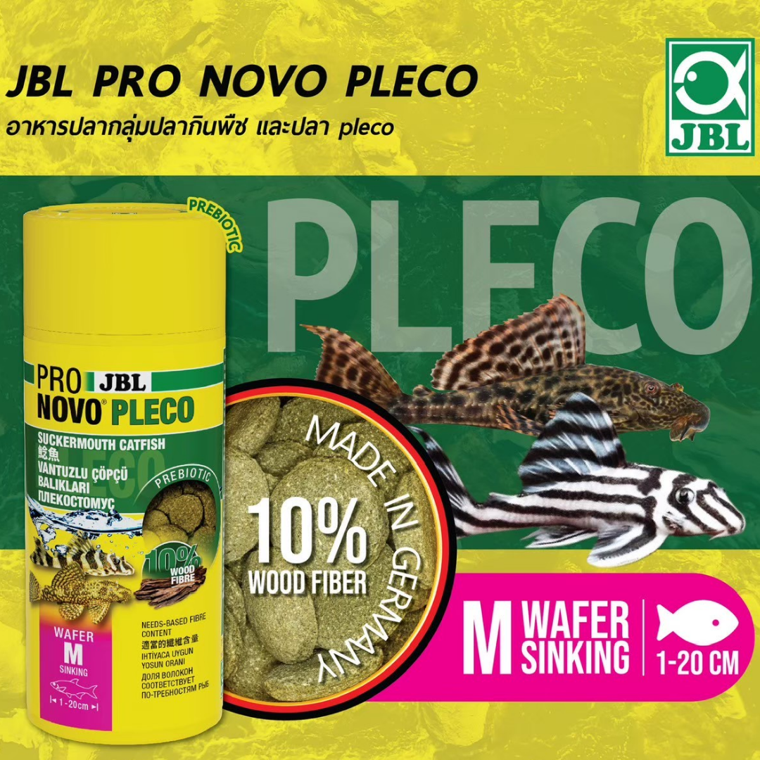 JBL PRONOVO PLECO WAFER M อาหารหลักสำหรับปลาซักเกอร์ ส่วนผสมของ เนื้อไม้ 10% ไซส์ M (แบบจม) (53g/100ml)
