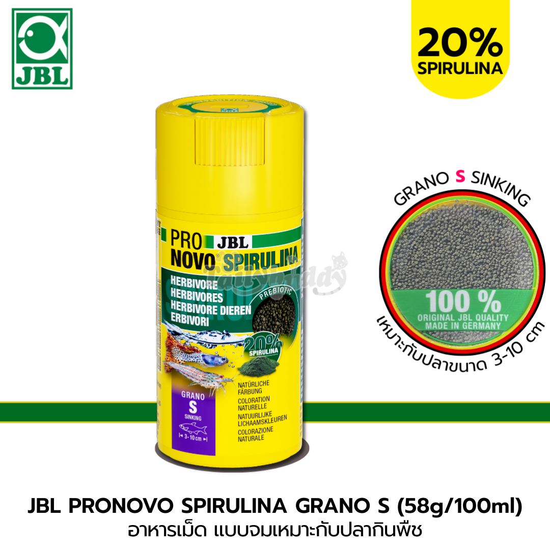 JBL PRONOVO SPIRULINA อาหารปลาสำหรับปลาตู้ปลาทุกชนิด ผสมสาหร่ายสไปรูลินาและพรีไบโอติก สำหรับปลาตู้ปลากินพืช/ตะไคร่น้ำ (16g,58g)