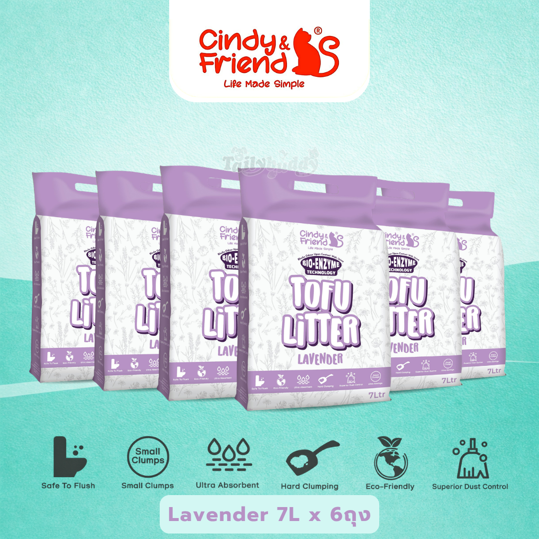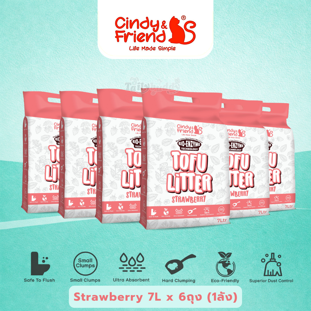 (โปรยกกล่อง) Cindy & Friends ทรายแมวเต้าหู้ ธรรมชาติ 100% เก็บกลิ่นไว ไร้ฝุ่น ทิ้งชักโครกได้ (7L x 6ถุง)