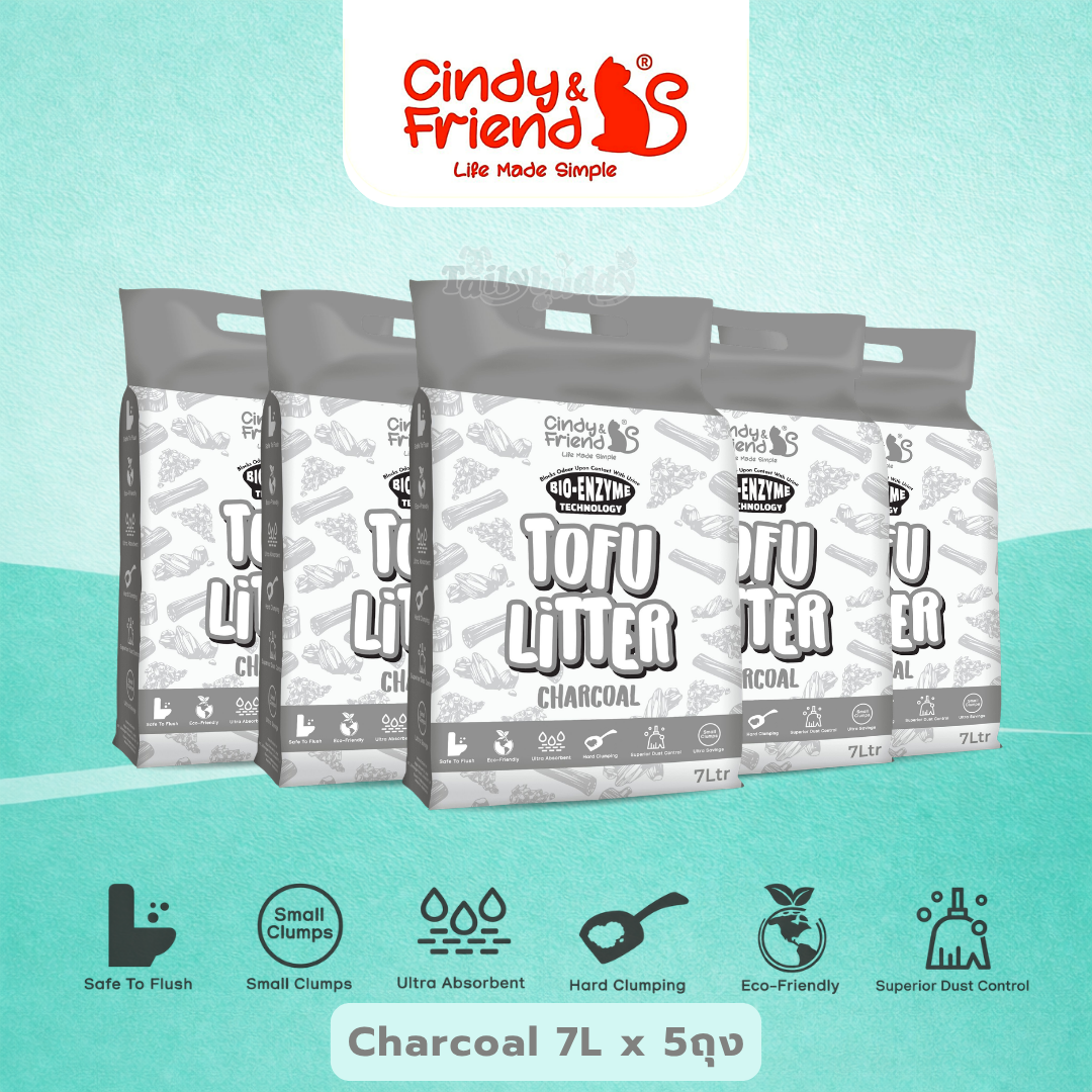 Cindy & Friends ทรายแมวเต้าหู้ กลิ่น ชาร์โคล ธรรมชาติ 100% เก็บกลิ่นไว ไร้ฝุ่น ทิ้งชักโครกได้ (7L)