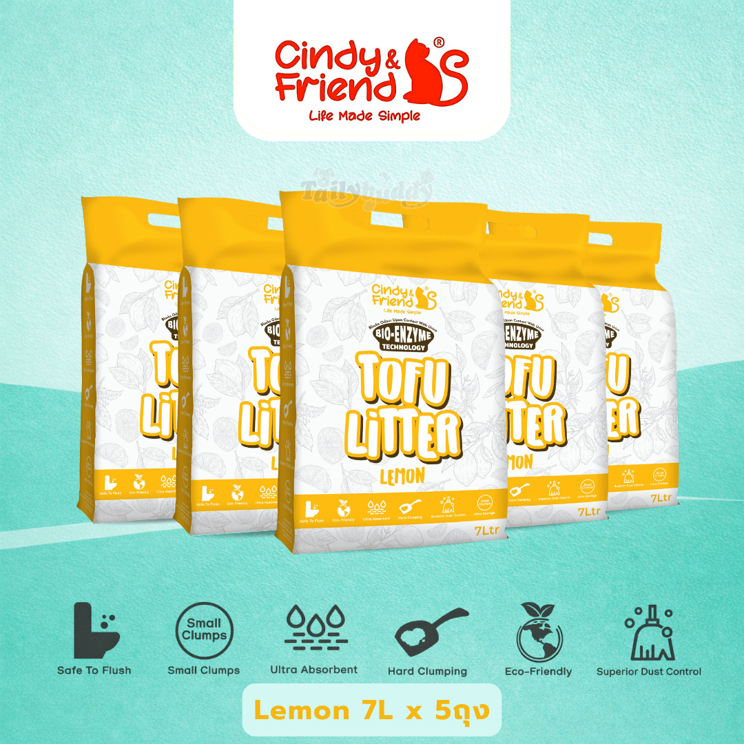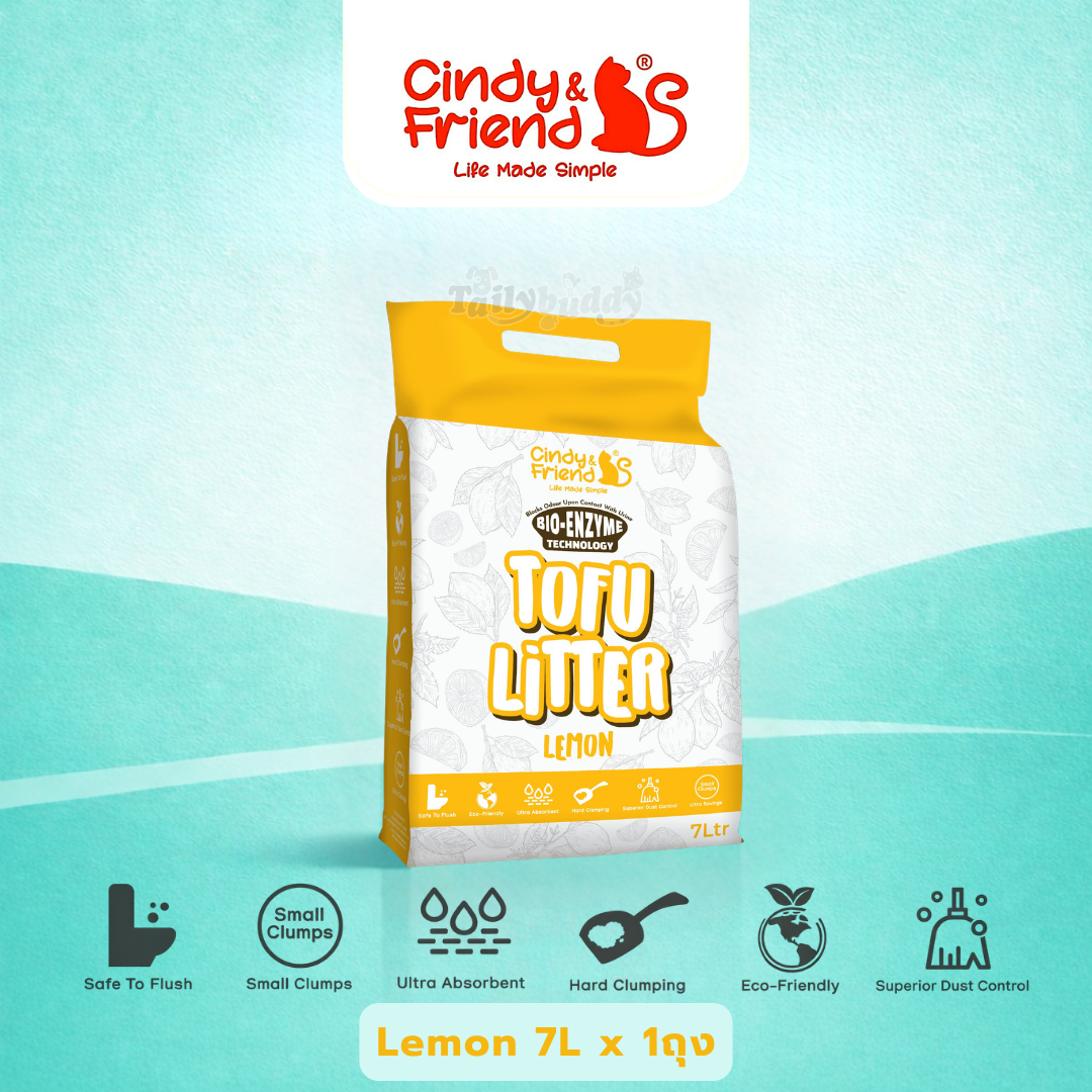 Cindy & Friends ทรายแมวเต้าหู้ กลิ่น เลมอน ธรรมชาติ 100% เก็บกลิ่นไว ไร้ฝุ่น ทิ้งชักโครกได้ (7L)