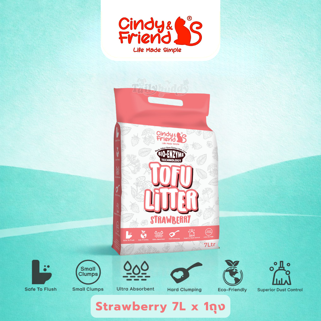Cindy & Friends ทรายแมวเต้าหู้ กลิ่น สตรอเบอร์รี่ ธรรมชาติ 100% เก็บกลิ่นไว ไร้ฝุ่น ทิ้งชักโครกได้ (7L)