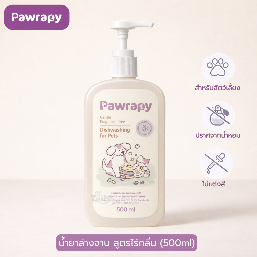 Pawrapy น้ำยาล้างจาน และของเล่นสำหรับสัตว์เลี้ยง สูตรอ่อนโยน ปราศจากสีและน้ำหอม ขนาด 500ml