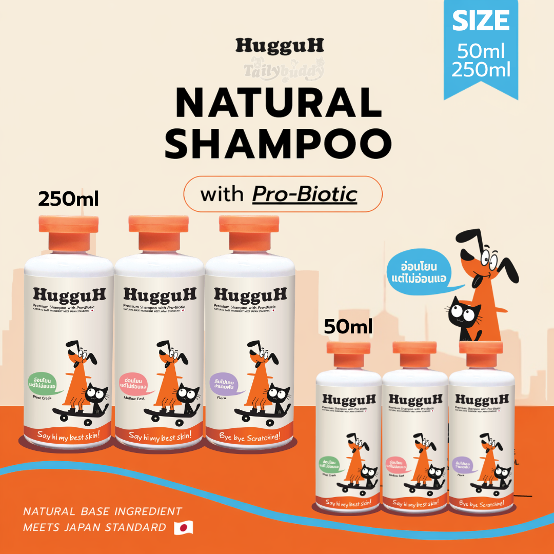 HugguH Premium Shampoo with Pro-Biotic ช่วยให้ผิวหนังแข็งแรง ปรับสมดุลผิว พร้อมกลิ่นหอม มี 3สูตร