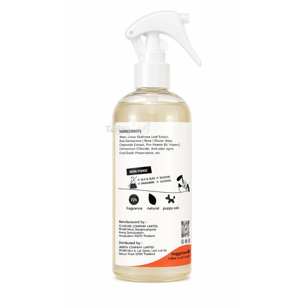 INGREDIENTS /ส่วนประกอบ Water,Litsea Glutinosa Leaf Extract , Rosa Damascena ( ROSE ) Flower Water,Chamomile Extract, Pro-Vitamin B5, Vitamin E,Cetrimonium Chloride , Anti-odor agent,Food-Grade Preservative,etc INSTRUCTIONSวิธีใช้ เพียงฉีดบนขนแล้วหวีเบาๆ ให้ทั่วตัว เพื่อขนนุ่ม หอมละมุน พร้อมกอดทุกวัน -