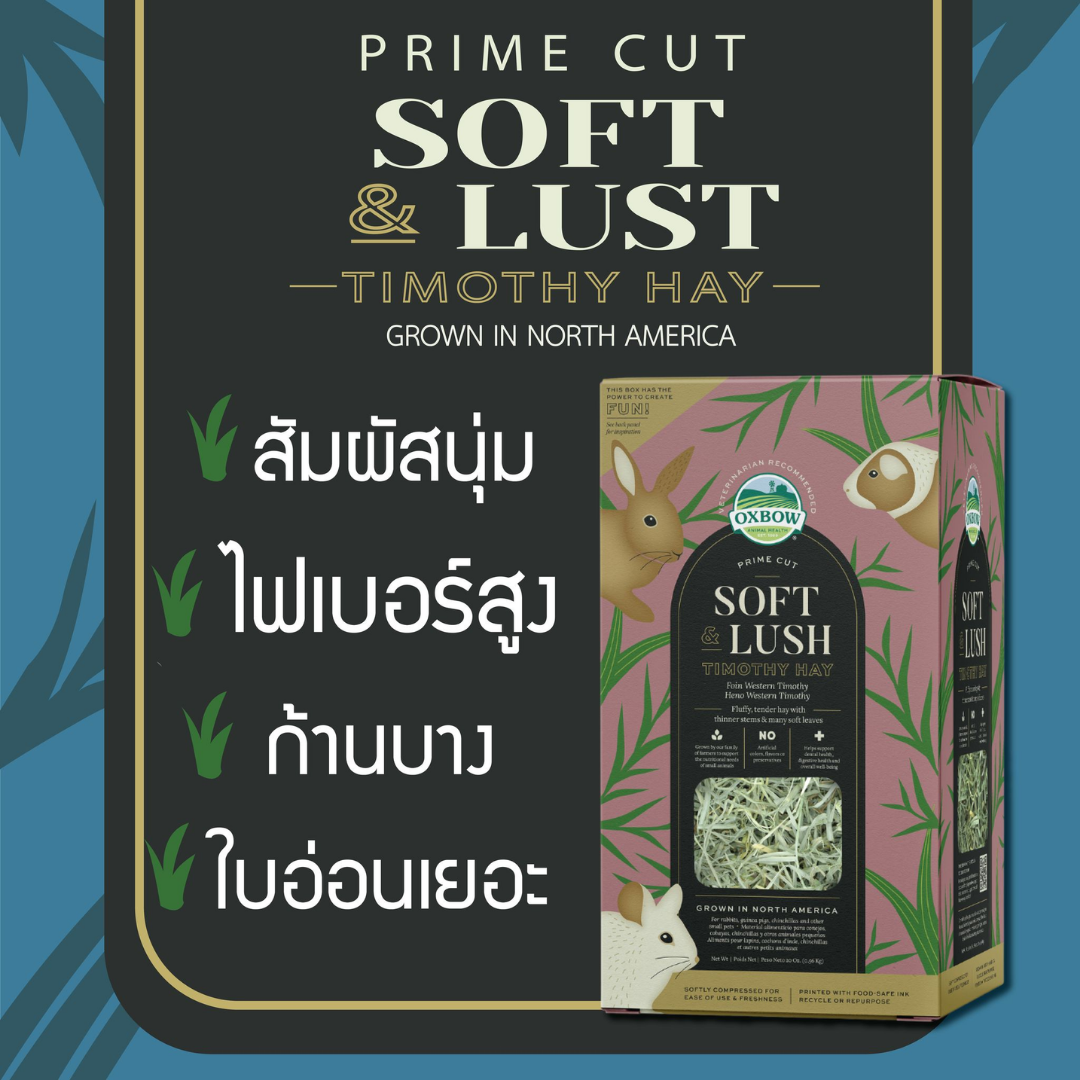 OXBOW PRIME CUT SOFT & LUSH TIMOTHY HAY อ็อกซ์โบว์ หญ้าทิโมธีเกรดพรีเมี่ยม สำหรับสัตว์ฟันแทะหญ้าแห้งคุณภาพเยี่ยม คัดสรรด้วยมือ นุ่มและอุดมสมบูรณ์ มอบประโยชน์ต่อสุขภาพฟันและระบบย่อยอาหารที่สัตว์เลี้ยงต้อง พร้อมรสชาติและเนื้อสัมผัสที่ลงตัว ด้วยหญ้าแห้ง Oxbow Prime Cut คุณไม่ได้แค่ให้อาหารพวกมันเท่านั้น แต่ยังตอบสนองความต้องการในการสำรวจ ค้นหา และเรียนรู้ มอบประสบการณ์ระดับพรีเมียมอย่างแท้จริง นี่เป็นหนึ่งในหลายๆ วิธีที่เราสนับสนุนการเสริมสร้างพัฒนาการในชีวิตประจำวันและสุขภาพโดยรวมของสัตว์เลี้ยงของคุณความพิเศษของหญ้า Oxbow Prime Cut Soft & Lush อยู่ที่กระบวนการผลิตและการคัดเลือกที่เน้นความนุ่มนวลและรสชาติที่สัตว์เลี้ยงชื่นชอบเป็นพิเศษ