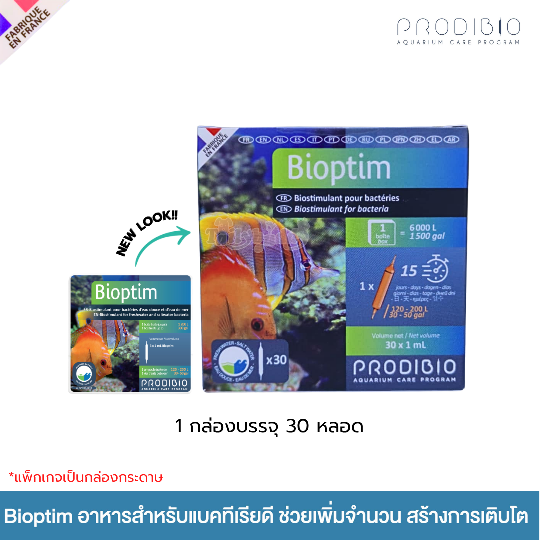 Prodibio Bioptim อาหารสำหรับแบคทีเรียโดยเฉพาะในตู้ปลาทะเล ช่วยให้แบคทีเรียดี เพิ่มจำนวนและเติบโต (1กล่อง, 30หลอด)