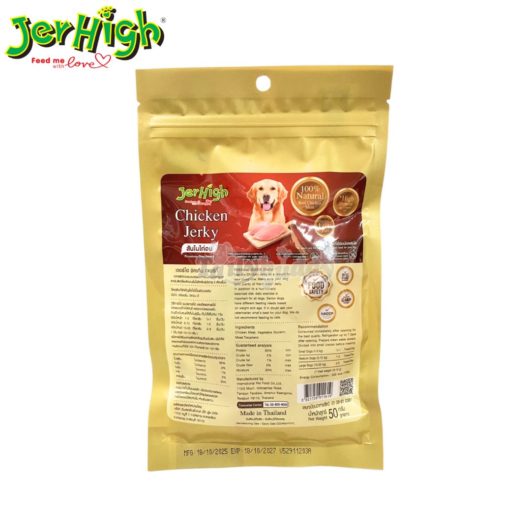 Jerhigh Chicken Jerky เจอร์ไฮ สติ๊ก สันในไก่อบแห้ง ขนมสำหรับสุนัข เพิ่มพลังงาน (50g)