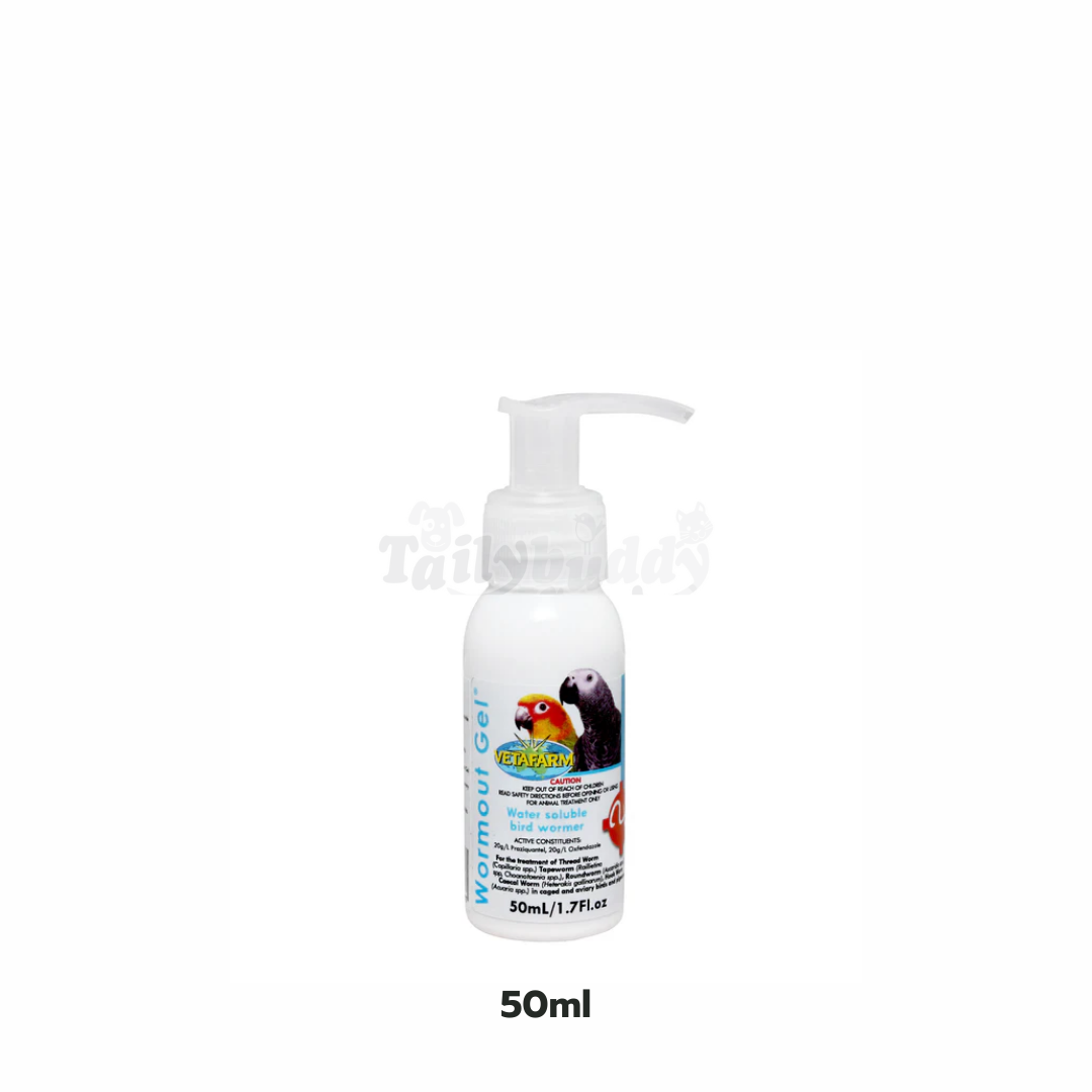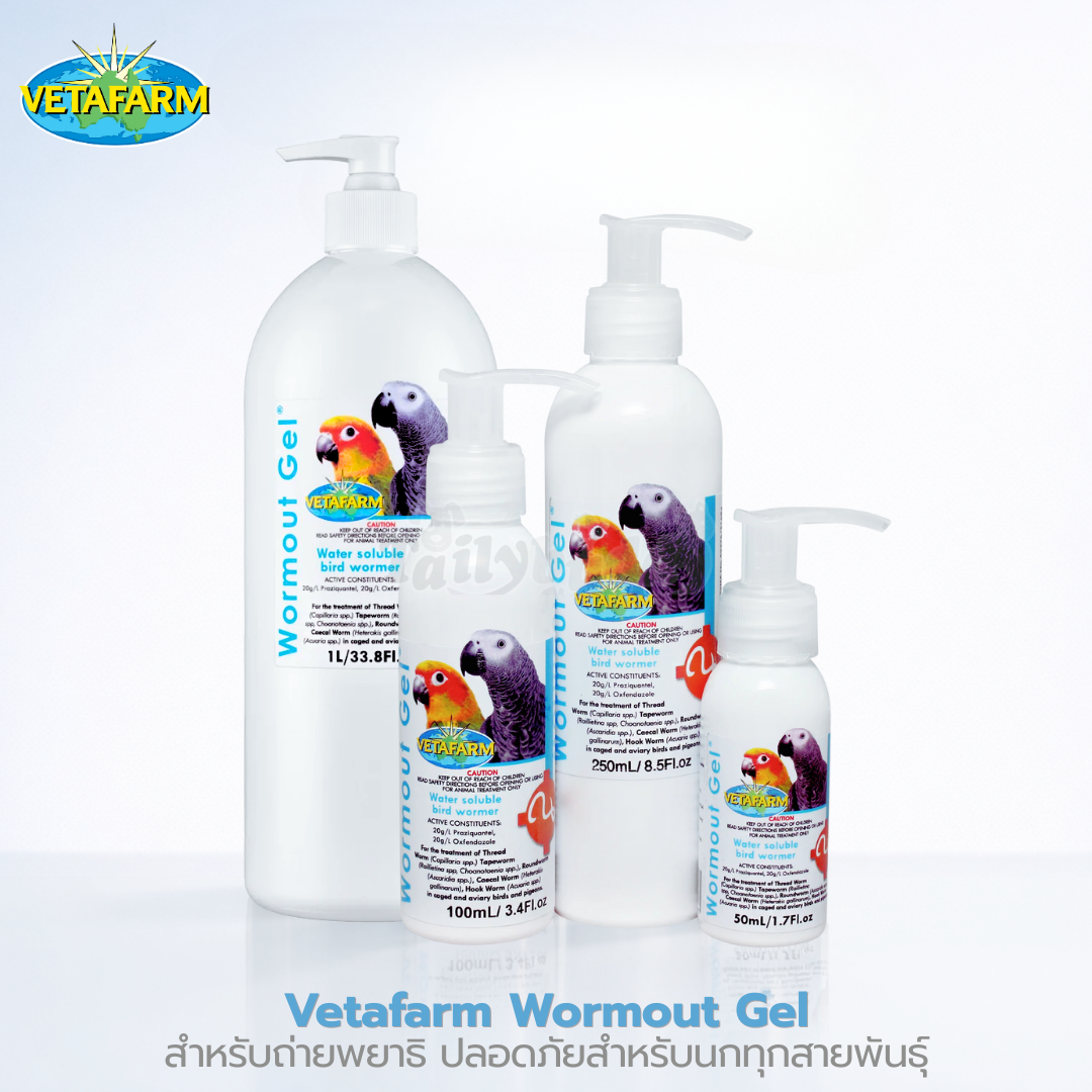 Vetafarm Wormout Gel ยาถ่ายพยาธิ ปลอดภัยสำหรับนกทุกสายพันธุ์ ฆ่าพยาธิทุกชนิด (50ml)