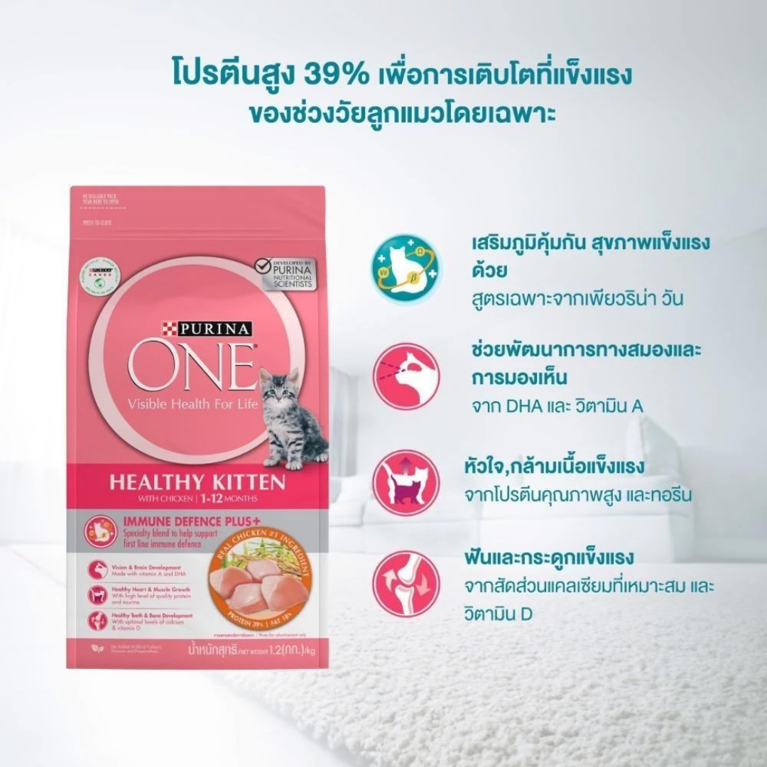 Purina One อาหารเม็ดสูตรสำหรับลูกแมว อายุ 3 สัปดาห์ - 1ปี มีโปรตีนสูงถึง 39% เพื่อให้ลูกแมวเติบโตสมวัย (380g, 1.2kg. ,6.6kg)