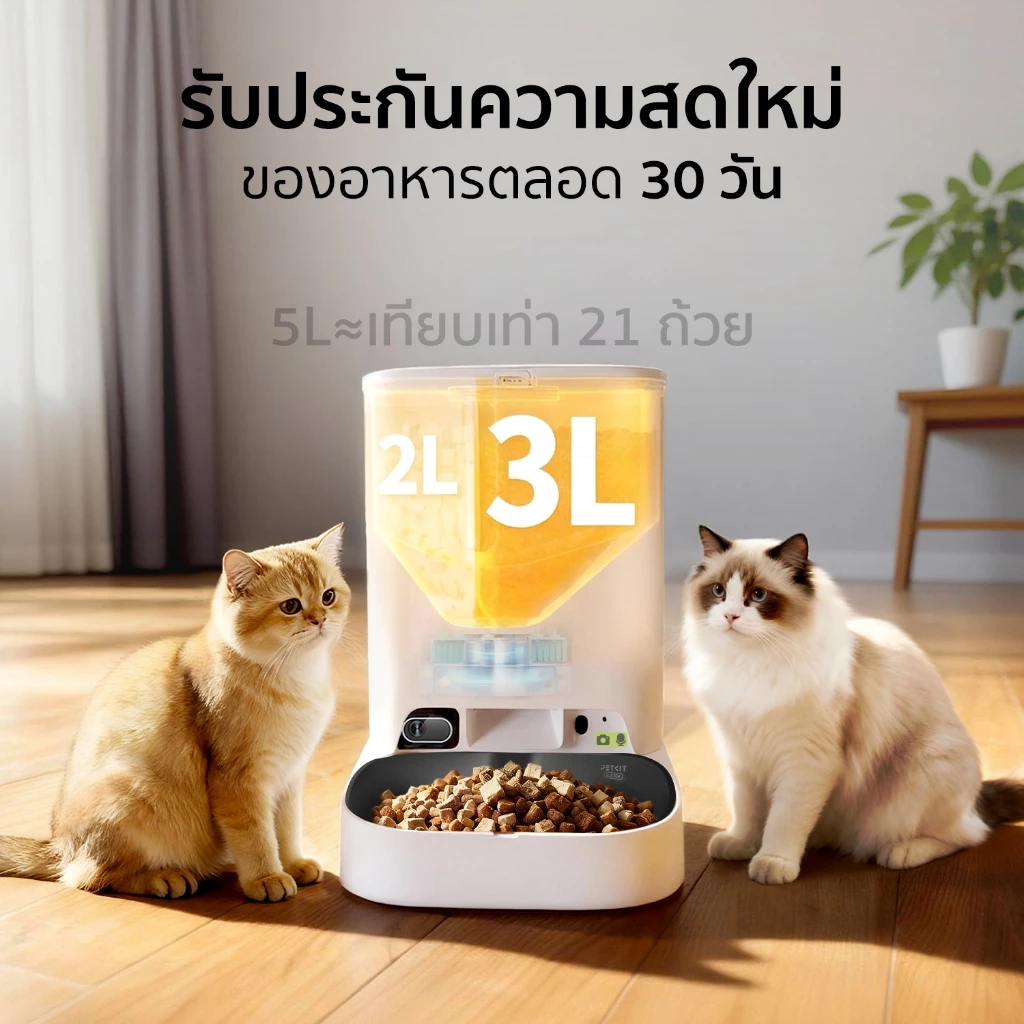 ▪️ความจุ 5 ลิตร เป็นช่าง 2 ลิตร และ 3 ลิตร สามารถให้อาหารได้นานสุดถึง 1 เดือน