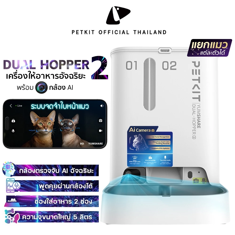 (รุ่นใหม่ล่าสุด Version 2) PETKIT Yumshare Dual-Hopper With Camera 2 Upgrade (Global Version)