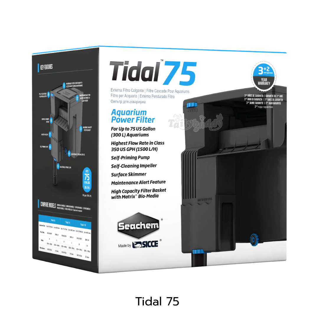 รุ่น Tidal 75 (แถมวัสดุกรอง SEACHEM Matrix)- เหมาะสำหรับตู้ปลาปริมาตรน้ำไม่เกิน 300 ลิตร