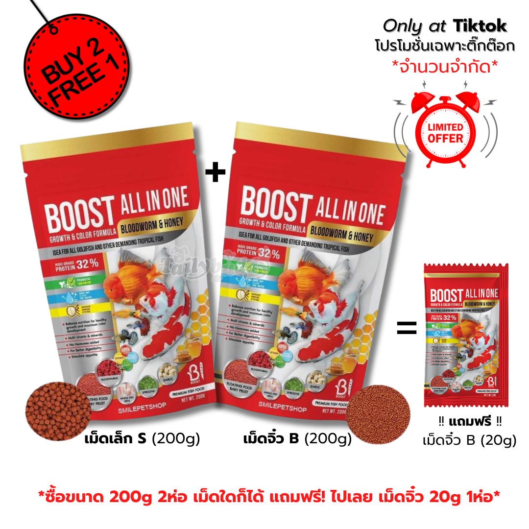 BOOST ALL IN ONE Bloodworm & Honey อาหารปลาผสมหนอนแดงและน้ำผึ้ง (เม็ดลอย) สำหรับปลาหางนกยูง ปลาทอง ปลาคาร์ฟ และปลาสวยงามทุกประเภท