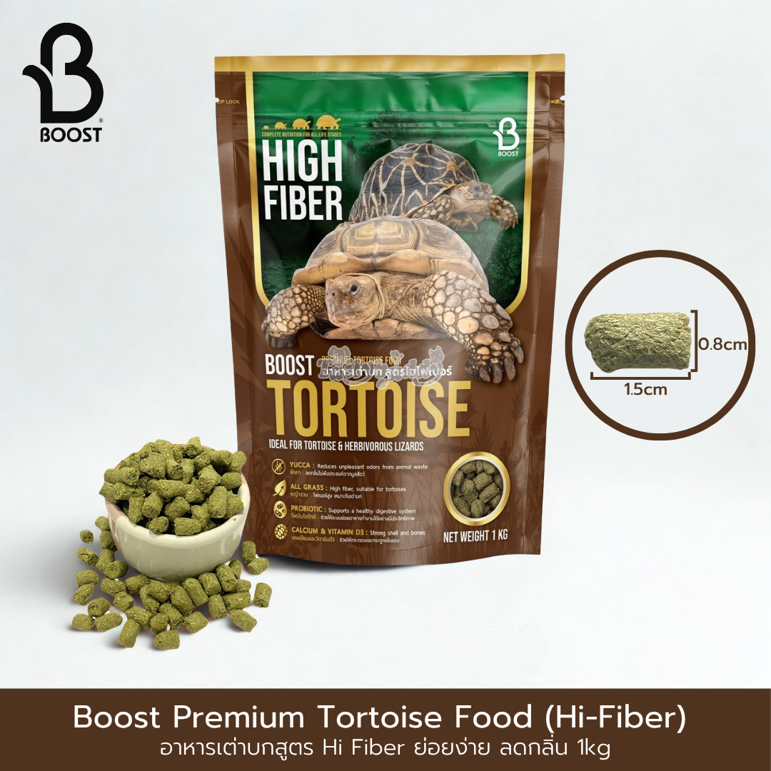 BOOST PREMIUM TORTOISE FOOD (Hi-Fiber) อาหารเต่าบกสูตร Hi Fiber ย่อยง่าย ลดกลิ่น (1kg)