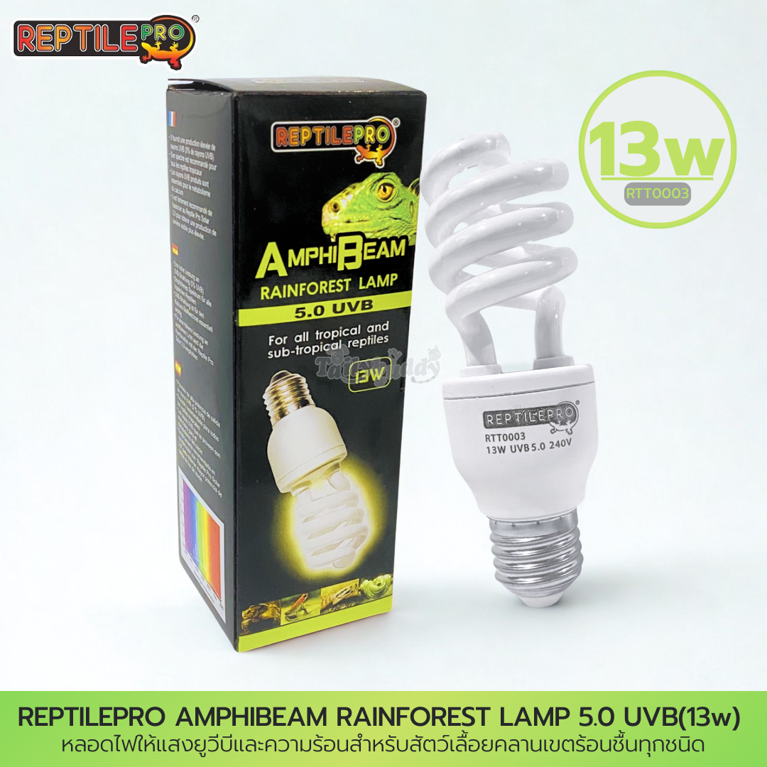 REPTILEPRO AMPHIBEAM RAINFOREST LAMP 5.0 UVB หลอดไฟให้แสงยูวีบีและความร้อนสำหรับสัตว์เลื้อยคลานเขตร้อนชื้นทุกชนิด (13w)
