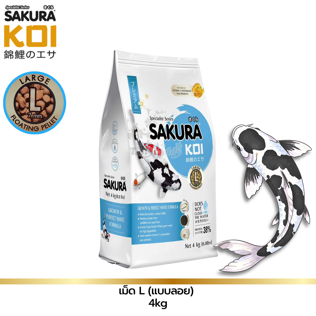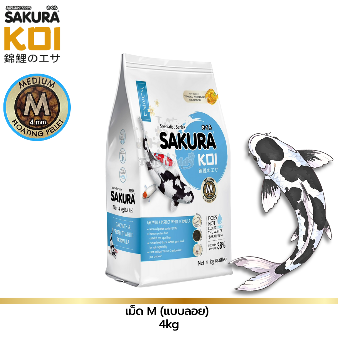 SAKURA KOI Growth & Perfect White Formula อาหารปลาคาร์ฟสูตรเร่งโต ปรับผิวขาว (เม็ดลอย) (1.25kg, 4kg)