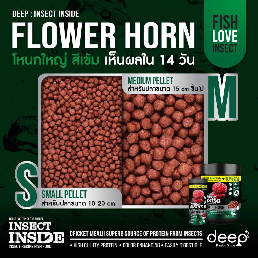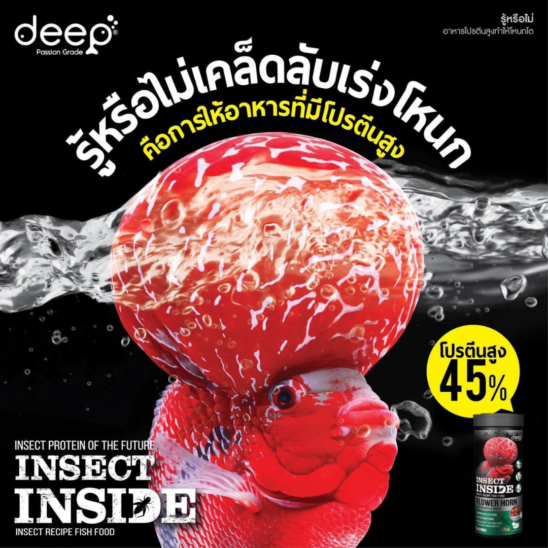 DEEP INSECT INSIDE FLOWER HORN .อาหารปลาหมอสี สูตร เร่งโหนกใหญ่ เร่งสีเข้ม เร่งโตไว ผสมโปรตีนจากจิ้งหรีด มีโปรตีนสูง 45% เห็นผลไวภายใน 14 วัน ผลิตจากวัตถุดิบคุณภาพดี ย่อยและดูดซึมได้ง่าย