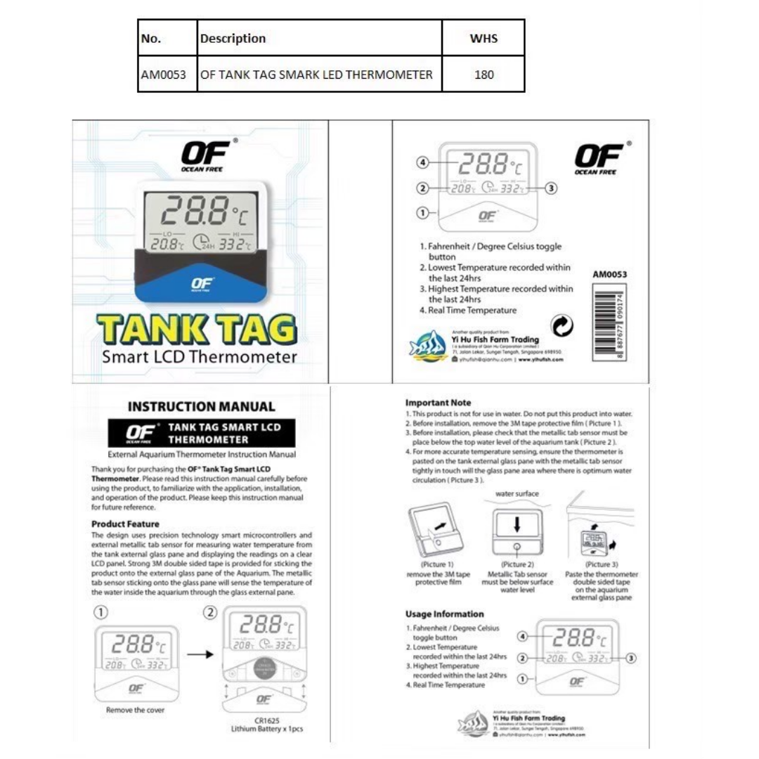 OF OCEAN FREE TANK TAG Smart LCD Thermometer เครื่องวัดอุณหภูมิแบบจอ LCD อัจฉริยะสำหรับตู้ปลา (AM0053)