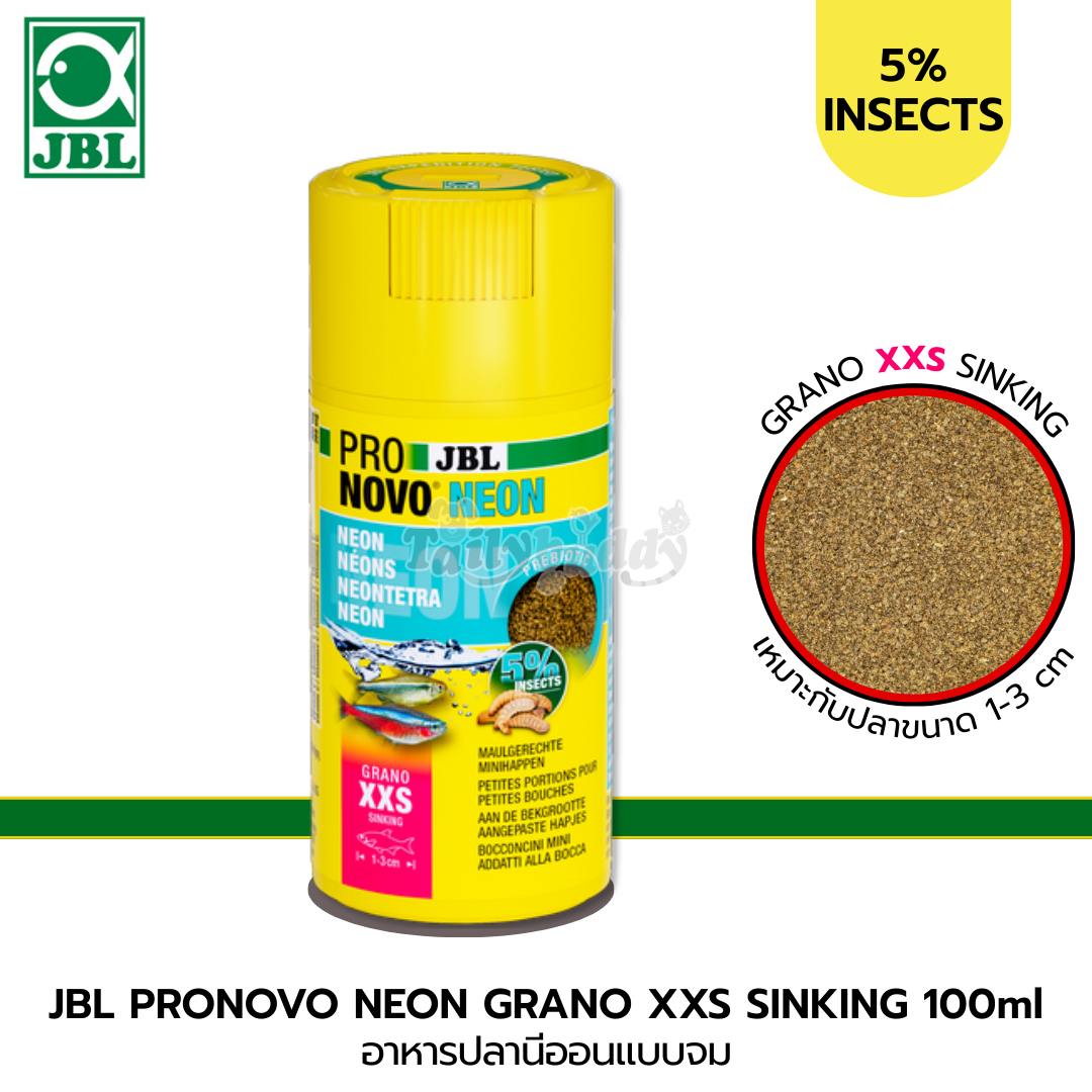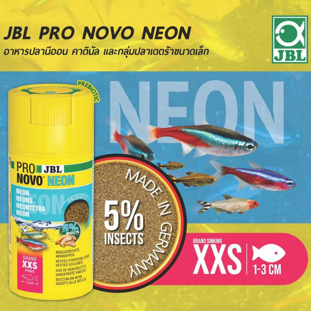 JBL PRONOVO NEON GRANO XXS อาหารปลาสำหรับปลานีออน และปลาคาราซินขนาดเล็กชนิดอื่นๆ ขนาด 1-3cm (แบบจม) (48g/100ml)