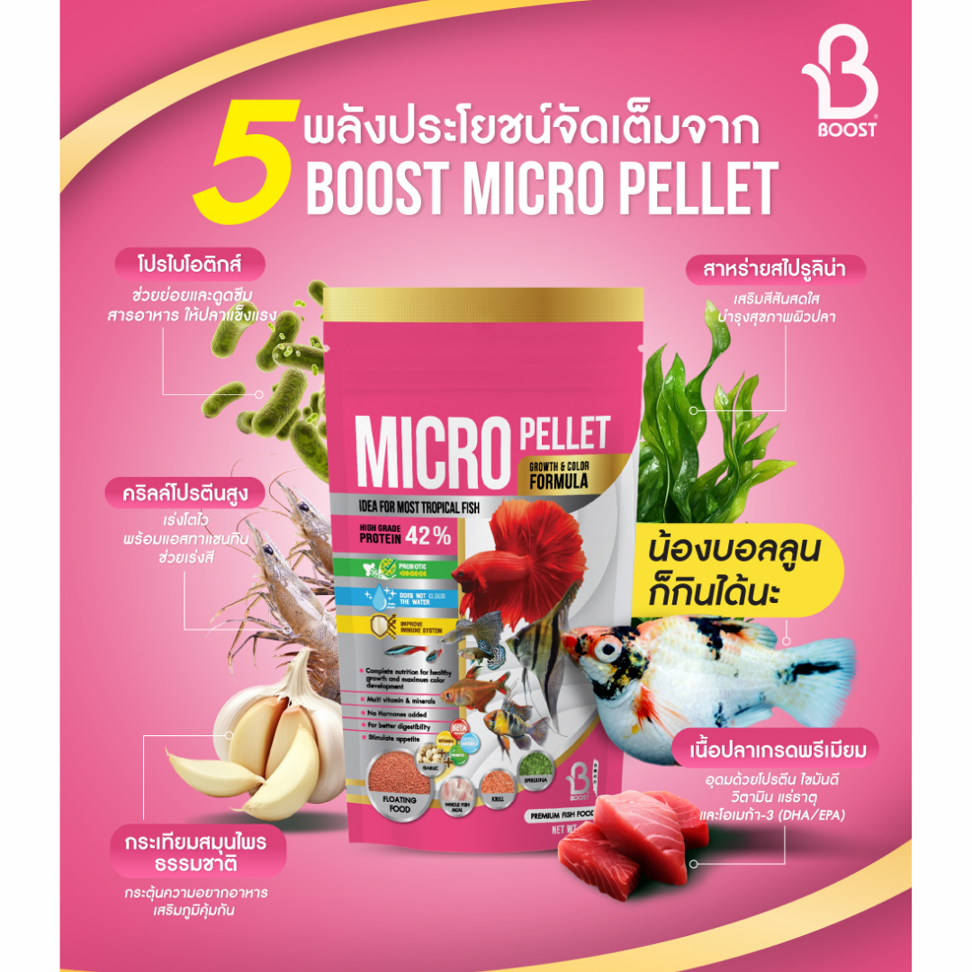 Boost Micro Pellet Growth & Color Formula อาหารปลาสวยงามขนาดเล็ก (เม็ดลอย) (60g)