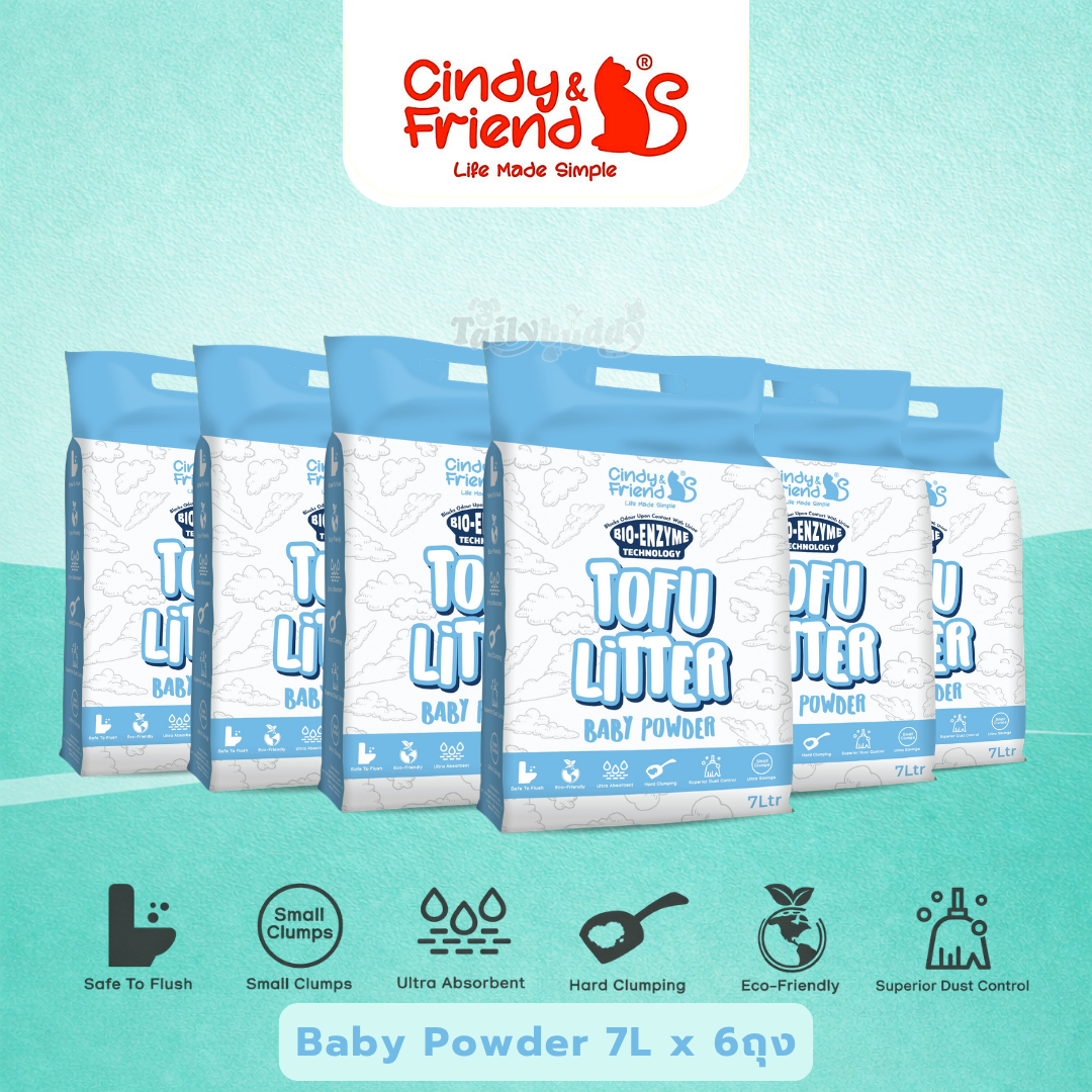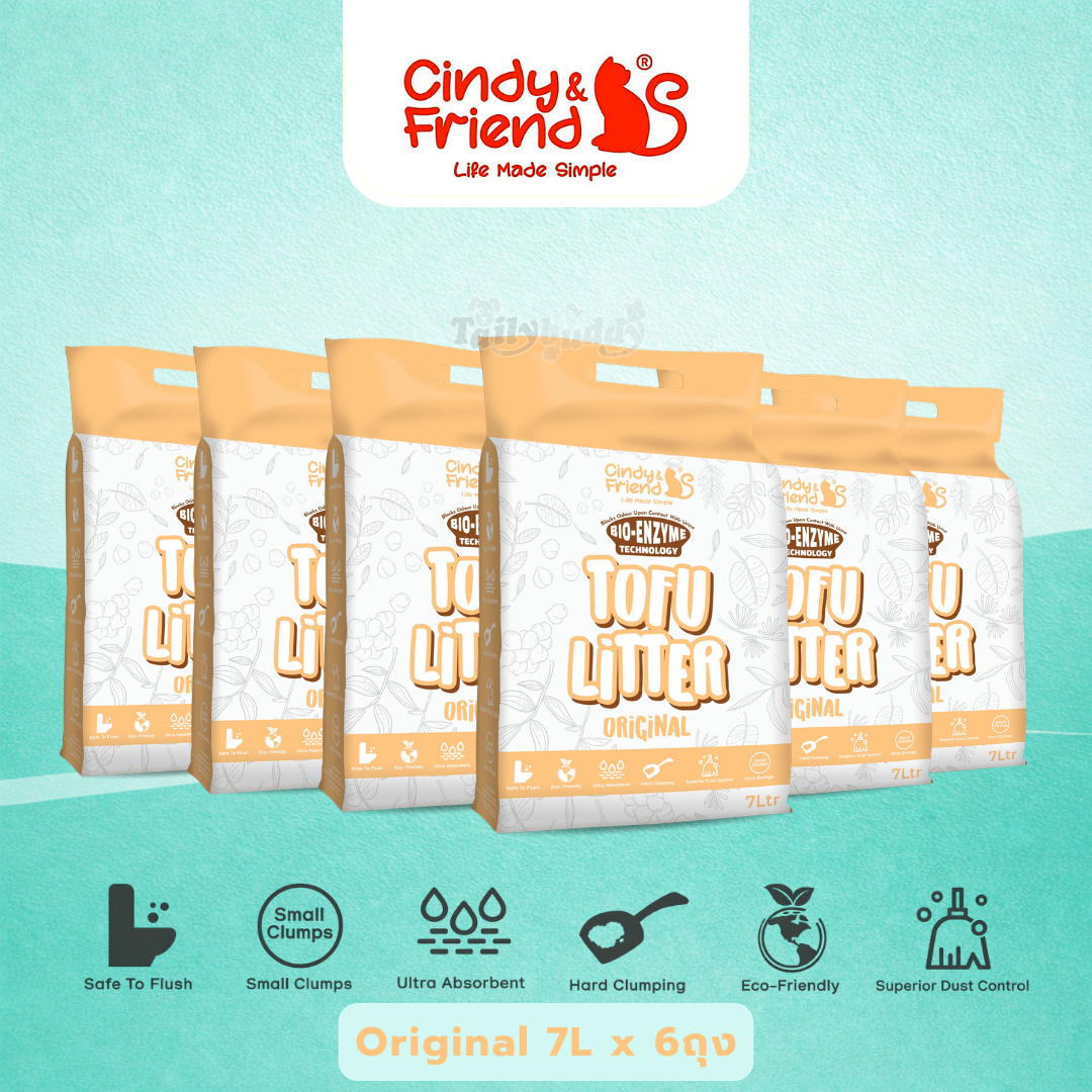 (โปรยกกล่อง) Cindy & Friends ทรายแมวเต้าหู้ ธรรมชาติ 100% เก็บกลิ่นไว ไร้ฝุ่น ทิ้งชักโครกได้ (7L x 6ถุง)