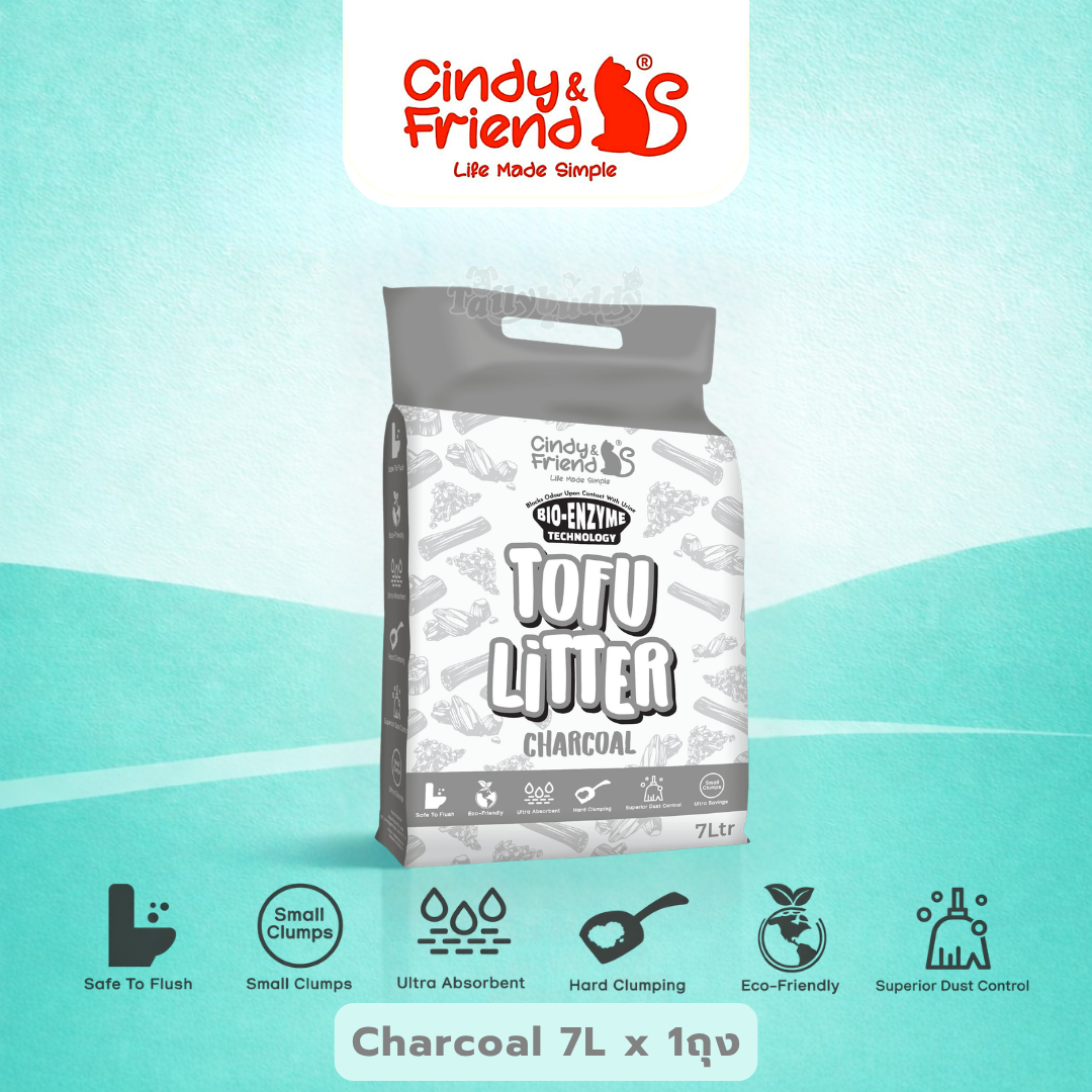 Cindy & Friends ทรายแมวเต้าหู้ กลิ่น ชาร์โคล ธรรมชาติ 100% เก็บกลิ่นไว ไร้ฝุ่น ทิ้งชักโครกได้ (7L)