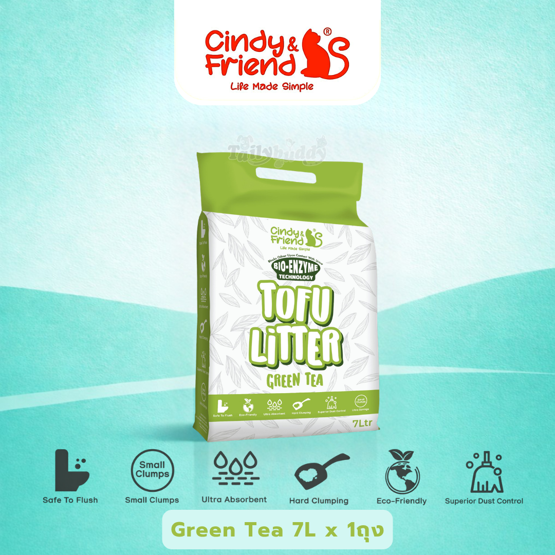 Cindy & Friends ทรายแมวเต้าหู้ กลิ่น ชาเขียว ธรรมชาติ 100% เก็บกลิ่นไว ไร้ฝุ่น ทิ้งชักโครกได้ (7L)