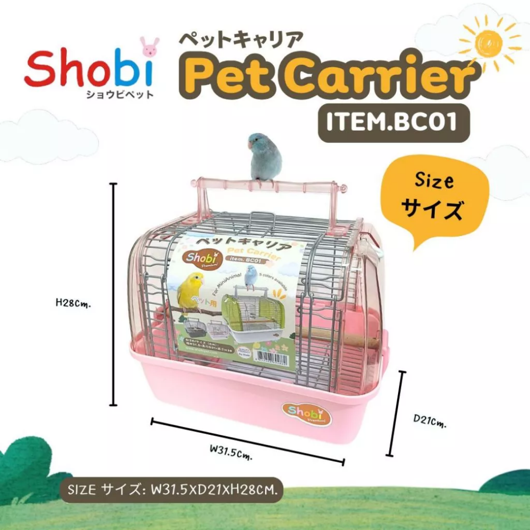 Shobi (โชบิ) กรงนกพกพา กรงพกพาสัตว์เลี้ยง กรงนกโชบิ รุ่นใหม่ มีให้เลือก 5 สี (สีเทาเข้ม,สีขาว,สีม่วง,สีชมพู,สีเขียว) (BC01)