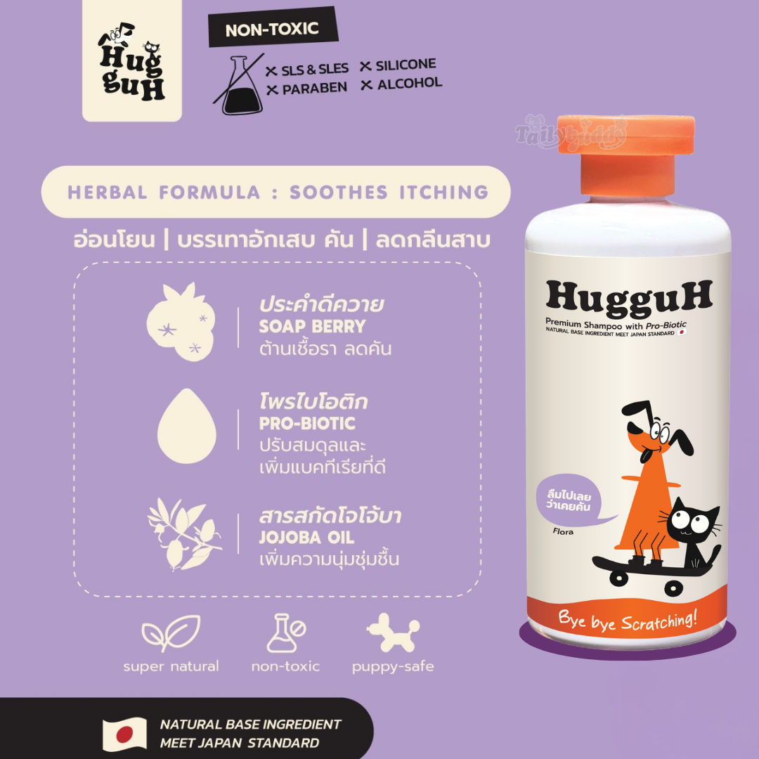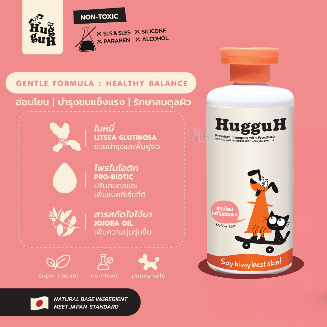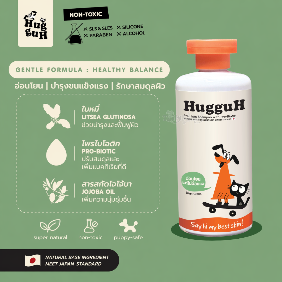 HugguH Premium Shampoo with Pro-Biotic ช่วยให้ผิวหนังแข็งแรง ปรับสมดุลผิว พร้อมกลิ่นหอม มี 3สูตร