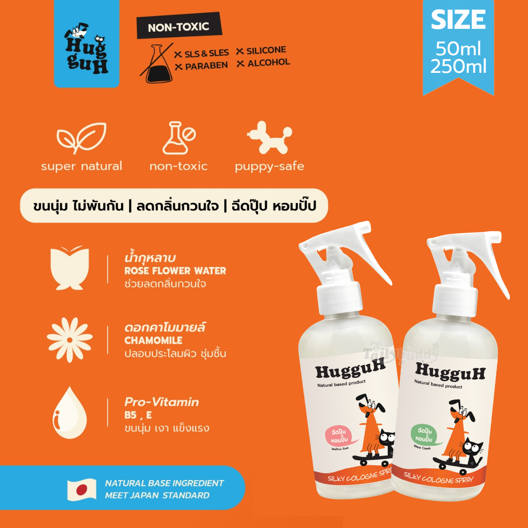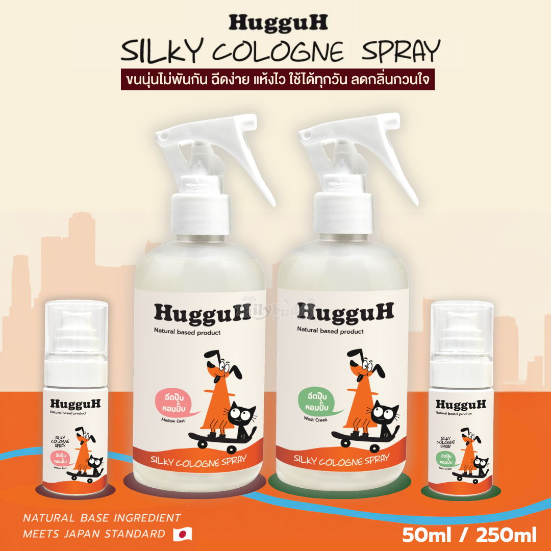 HugguH Silky Spray สเปรย์บำรุงขน สำหรับสัตว์เลี้ยง ช่วยให้ขนนุ่ม หอมทันใจใช้ได้ทุกวัน (50ml , 250ml)