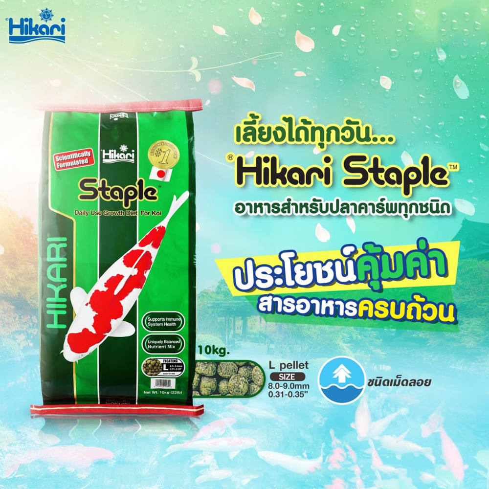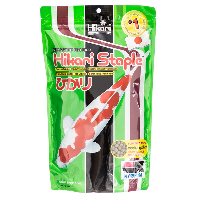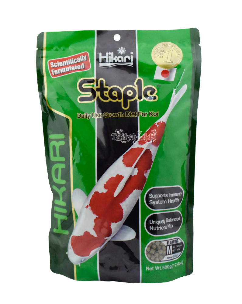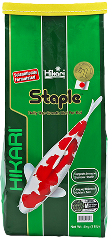Hikari® Staple™ is a lab formulated, daily diet, for feeding Koi and other pond fish in warmer water temperatures. The uniquely balanced ingredients support rapid growth, proper form and efficient utilization. This floating diet will not cloud your water and contains necessary vitamins, including stabilized vitamin C to support immune system health.