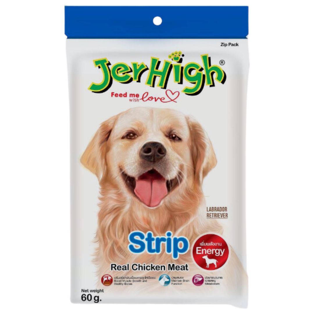 เจอร์ไฮ สตริป เป็นสแน๊คคุณภาพสูงพร้อมด้วยคุณค่าทางอาหารและวิตามินต่างๆที่เหมาะสำหรับสุนัข เพื่อให้สุนัขของคุณมีสุขภาพที่แข็งแรง สมบูรณ์ สมวัย และมีรสชาติไก่ที่สุนัขของท่านต้องติดใจ โดยผลิตด้วยรูปลักษณ์แบบแผ่นที่สะดวกในการให้ของผู้ให้และง่ายในการรับประทานของน้องสุนัข
