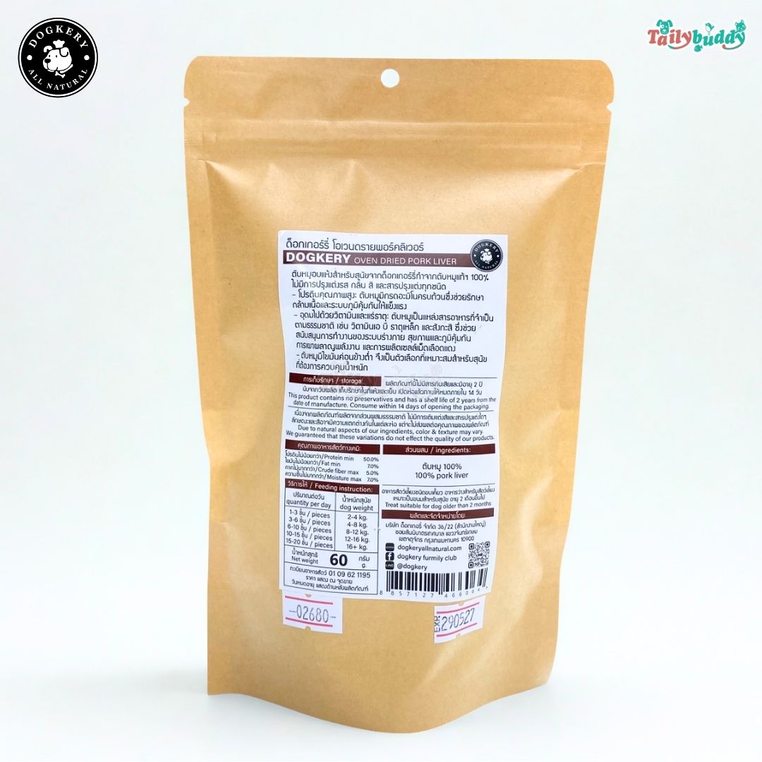 DOGKERY OVEN DRIED Pork Liver Bake ตับหมูอบแห้ง ขนมสำหรับสุนัข (60g)