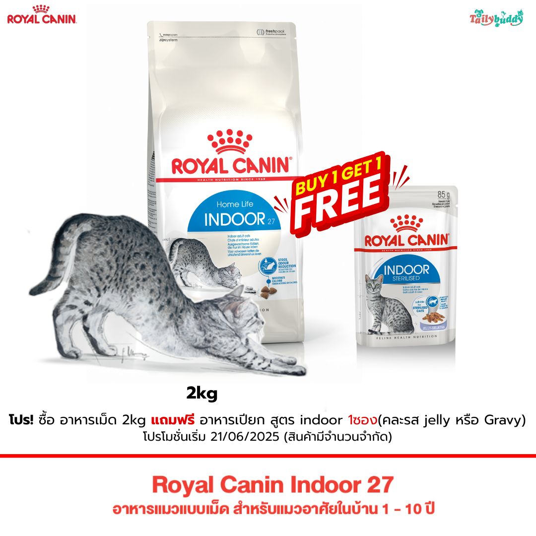 Royal Canin Indoor 27 อาหารแมวแบบเม็ด สำหรับแมวอาศัยในบ้าน 1 - 10 ปี (400g , 2 kg , 4 kg , 10 kg)