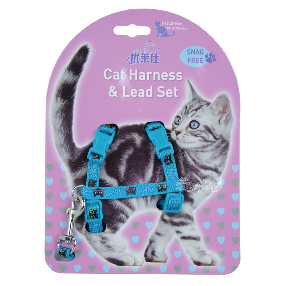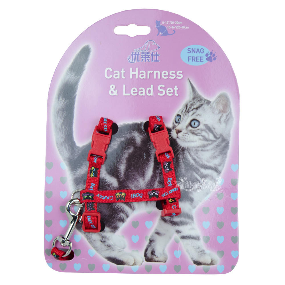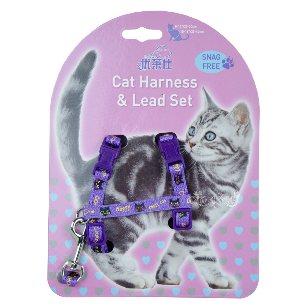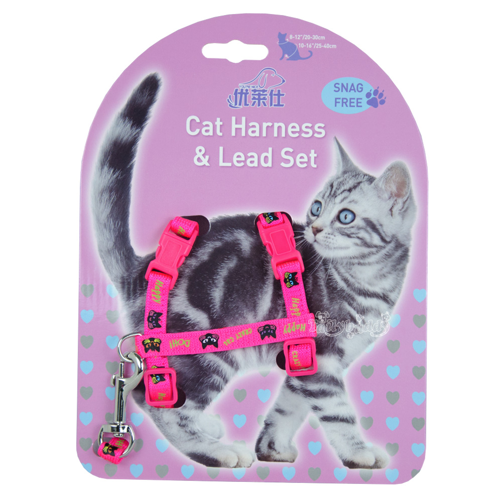 สายจูงพร้อมชุดรัดอก สำหรับแมว สีสันสดใส (คละสี)