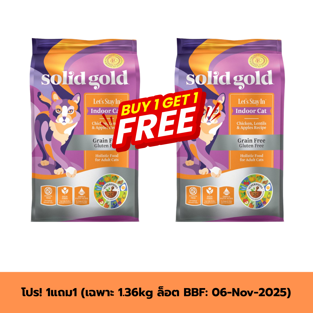 Solid Gold Let's Stay In, Indoor Cat Chicken อาหารแมวเกรดโฮลิสติก สำหรับแมวเลี้ยงในบ้าน สูตรไก่ (1.36kg, 2.72kg)