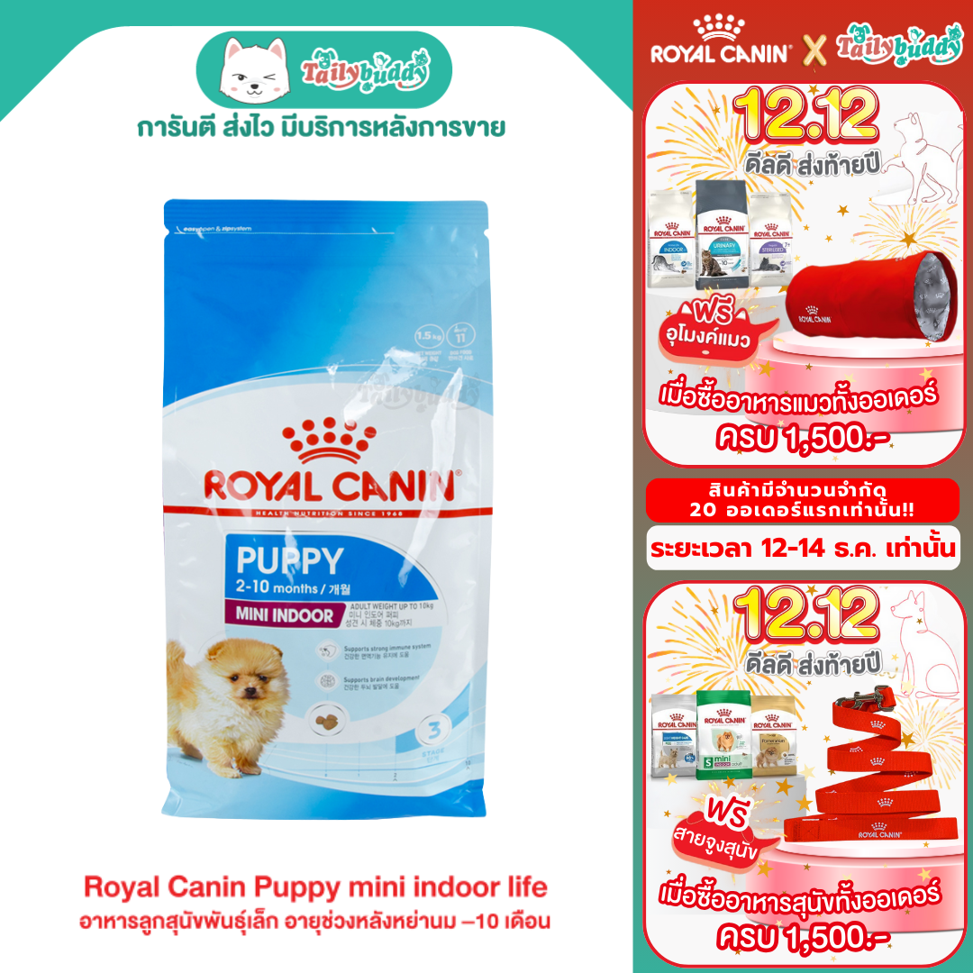 Royal Canin Puppy mini indoor life อาหารลูกสุนัขพันธุ์เล็ก อายุช่วงหลังหย่านม–10 เดือน แบบเม็ด(0.5kg , 1.5kg.)