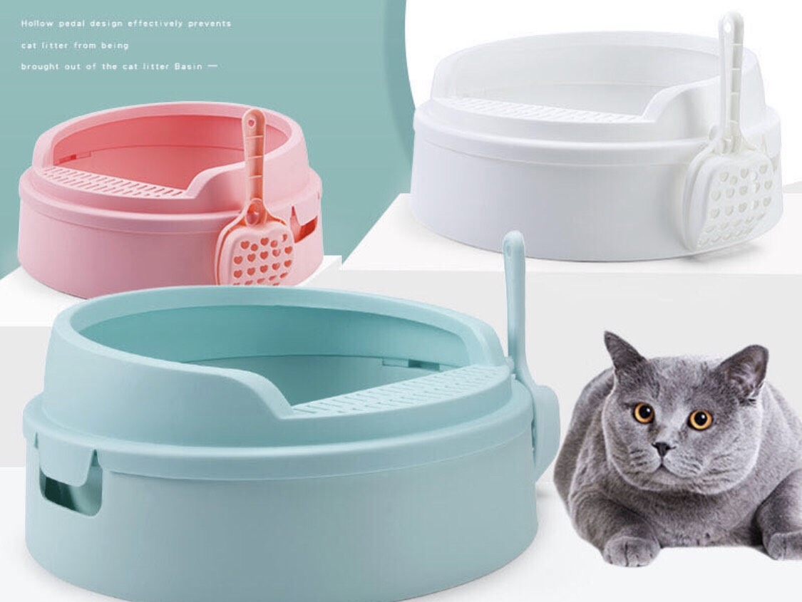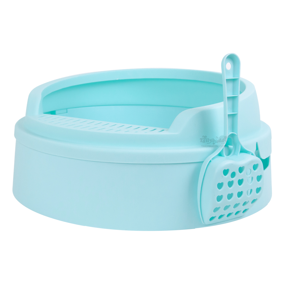 Cat Litter box ห้องน้ำแมววงกลมสีหวาน + ที่ตักลายหัวใจ (สีเขียว, สีชมพู, สีขาว)