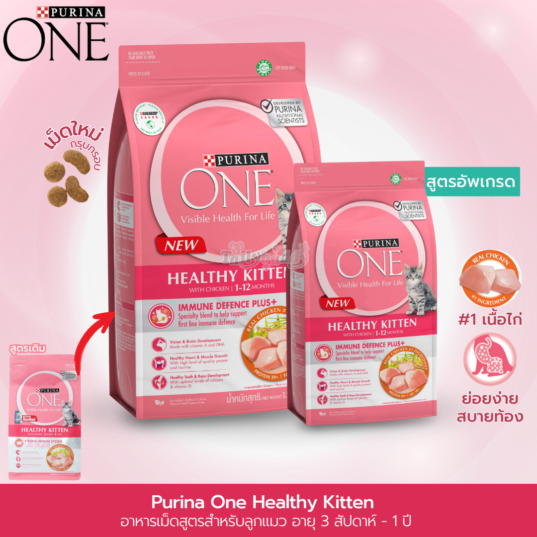 Purina One อาหารเม็ดสูตรสำหรับลูกแมว อายุ 3 สัปดาห์ - 1ปี มีโปรตีนสูงถึง 39% เพื่อให้ลูกแมวเติบโตสมวัย (380g, 1.2kg. ,6.6kg)