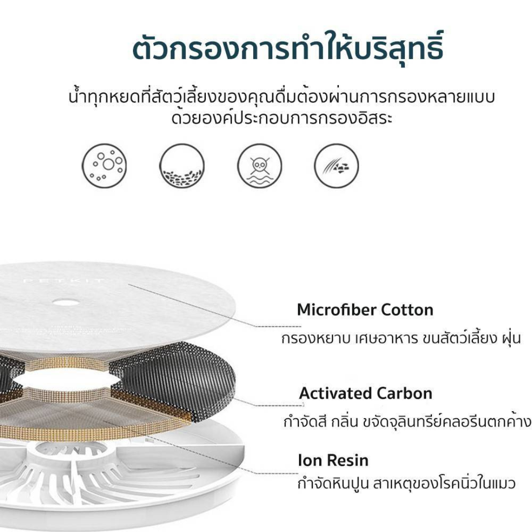 - แผ่นกรองมีรูพรุน ช่วยป้องกัน ฝุ่นละออง เศษขน เพื่อให้สัตว์เลี้ยงได้ดื่มน้ำที่สะอาดที่สุด