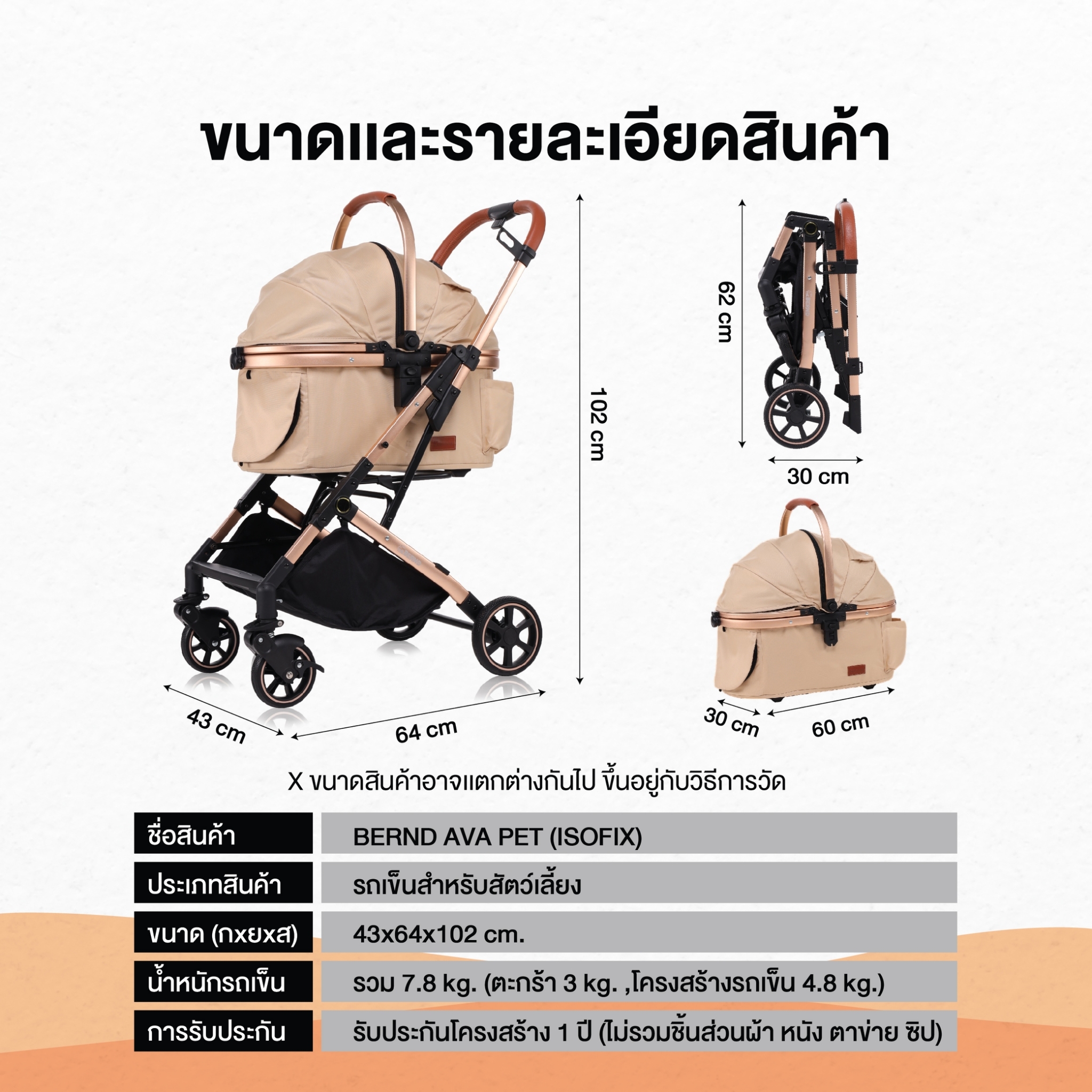 - ขนาด (กxส) ตอนพับ (มีล้อ) 30x62 cm.