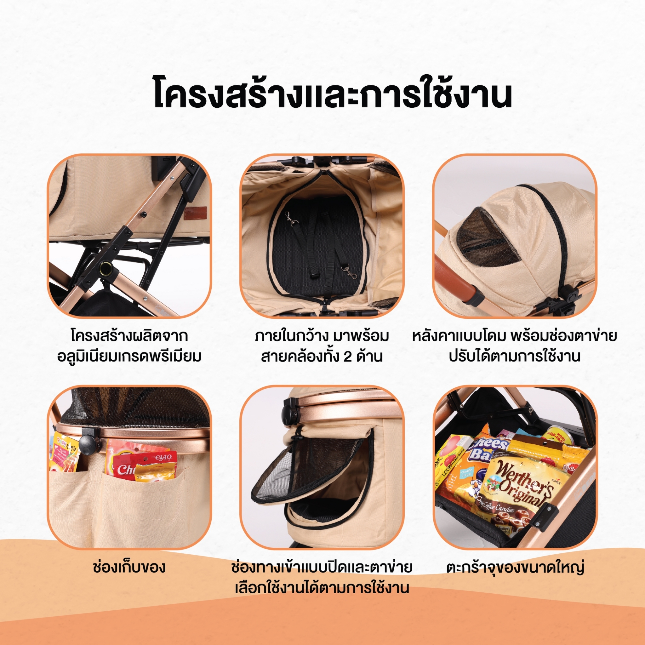 - หลังคาและตะกร้ามีช่องตาข่ายสามารถมองออกได้ทั้ง 2 ด้าน ด้านหน้าและด้านหลัง