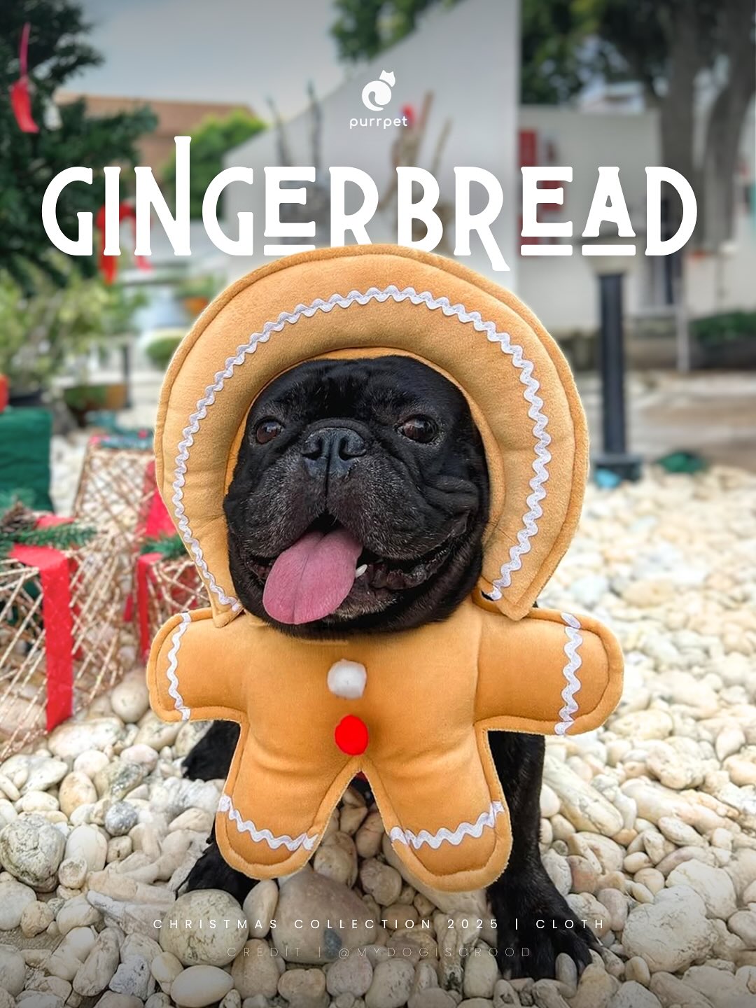 (พร้อมส่ง!) Purrpet หมวกขนมปังขิง ผ้านุ่มพรีเมี่ยม - Christmas Collection ชุดแฟนซีน้องหมาน้องแมว ชุดคริสมาส